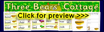 An activity for IWB (Smart Notebook) where children can drag the various characters and props as they retell the traditional tale of Goldilocks and the Three Bears.