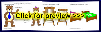 A set of A4-size printable visual aids for use when telling the story of Goldilocks and the Three Bears. The pack includes labelled pictures of all the main characters and elements of the story, including the bowls, chairs and beds.
