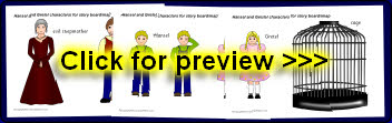 A set of printable cut-out character pictures for use when retelling the story of Hansel and Gretel. These are ideal for laminating and using on story boards or story mats to encourage oral retelling of the story.