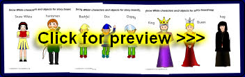 A set of printable cut-out characters and objects for use when retelling the story of Snow White. These are ideal for laminating and using on story boards or story mats to encourage oral retelling of the story.