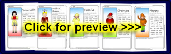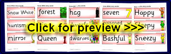 A great set of A4 printable visual aids to go with the story of Snow White and the Seven Dwarves. These are great for aiding whole-class discussion and as stimulus for retelling the story. They are also ideal for use on classroom displays.