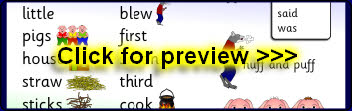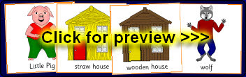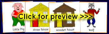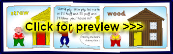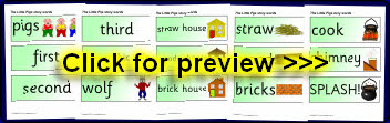 A set of printable word and picture cards linked to the story of The Three Little Pigs.