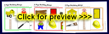 A set of colourful bingo boards linked to the story of The Three Little Pigs. Includes both picture and word boards and cards where children can match the words to the pictures or pictures to the words. Great for reinforcing your materials topic and discussion about how buildings are constructed.
