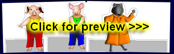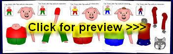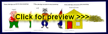 A set of printable cut-out character pictures for use when retelling the story of The Three Little Pigs. These are ideal for laminating and using on story boards or story mats to encourage oral retelling of the story. Also includes pictures of the straw, wood and brick houses and cooking pot.