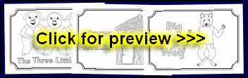 Printable finger puppets for the popular story of ‘The Three Little Pigs’. Simply cut out and tape the paper in place to make a finger loop.