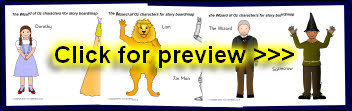 A set of printable cut-out character pictures for use when retelling the story of The Wizard of Oz. These are ideal for laminating and using on story boards or story mats to encourage oral retelling of the story.
