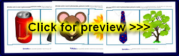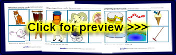 A set printable cards with alphabet sounds a-z and accompanying pictures cards for sound and picture matching games.