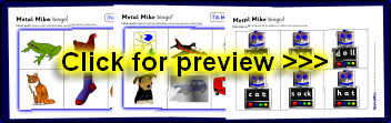 A printable ‘Metal Mike’ character along with 42 picture cards to accompany the Phase 1 ‘Metal Mike’ activity as outlined in the DfES ‘Letters and Sounds’ publication. Laminate, print and cut out Metal Mike’s mouth to ‘feed’ the cards to him and help him say the words!