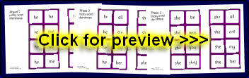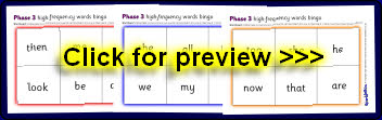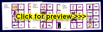 A bingo set where children match selected word cards (specified in the DfES ‘Letters and Sounds’ publication) to the pictures on their board.