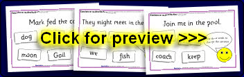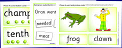 20 printable cards featuring suggested captions and sentences as outlined in Phase Three of the DfES Letters and Sounds publication.