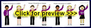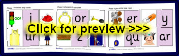 A set of printable loop cards featuring the Phase 3 phonemes (specified in the DfES ‘Letters and Sounds’ document) together with mnemonic pictures.