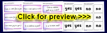 A set of 42 printable cards (3 per A4 sheet) featuring the suggested ‘yes/no questions’ from the DfES Letters and Sounds publication. Also includes pupil ‘yes/no’ cards that can be printed double sided to use as recommended in Letters and Sounds.