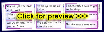 The Phase Three captions and sentences specified in the DfES Letters and Sounds publication presented on coloured jigsaw pieces for children to construct the sentences themselves.