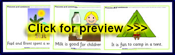 A set of 10 printable pairs of cards showing pictures and accompanying sentences (as outlined in the DfES ‘Letters and Sounds’ publication). Ideal for use as a matching activity where children match the picture card to the relevant sentence card.