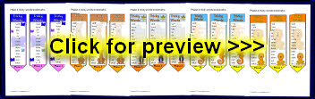 A set of printable bookmarks with various different themes listing Phase 4 tricky words.