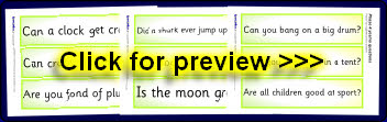 A set of 19 printable cards (3 per A4 sheet) featuring the suggested ‘yes/no questions’ from the DfES Letters and Sounds publication. Also includes pupil ‘yes/no’ cards that can be printed double sided to use as recommended in Letters and Sounds.