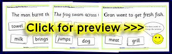 A set of 10 A4-sized printable activity mats where children can be challenged to make new sentences using the substitute words.