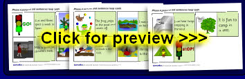 A set 11 loop cards featuring the pictures and sentences specified for Phase 4 of the DfES ‘Letters and Sounds’ publication.