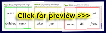 A simple bingo game featuring the Phase 4 high-frequency words, as specified in the DfES ‘Letters and Sounds’ publication.