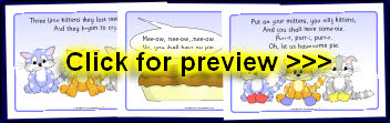 A set of simple A4-size visual aids for use when telling the popular rhyme, ‘Three Little Kittens’.
