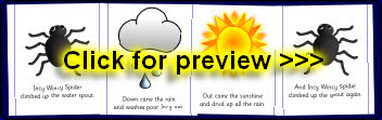 A set of simple A4-size visual aids for use when telling the popular nursery rhyme of Incy Wincy Spider.