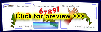 A set of A4 visual aids to accompany the well-known rhyme ‘1, 2, 3, 4, 5, once I caught a fish alive’.
