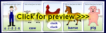A set of A4 visual aids to accompany the well-known rhyme ‘Old Macdonald had a farm’.
