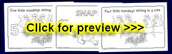 A set of A4 colouring sheets to accompany the number rhyme ‘Five Little Monkeys’.