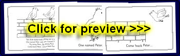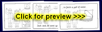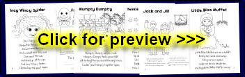 A set of sheets that can be assembled into a small A5 booklet featuring 7 different nursery rhymes for children to colour and read.