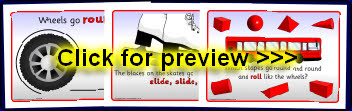 Posters that aid discussion about how some shapes roll (like the wheels of the bus) and some shapes slide (like blades on ice skates.