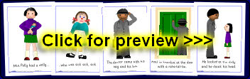 Simple black and white pictures (4-to-the-page) that can be cut out and sequenced. Alternatively, they can be used as stimulus for children’s own written retelling of the rhyme.