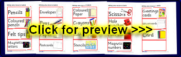 A useful and colourful group of signs for use in your writing area. Labels include the words ‘write’, ‘finger spaces’, ‘story’, ‘alphabet’ and ‘information’, each with relevant artwork and clear text. Brilliant to enhance and reinforce vocabulary when writing.