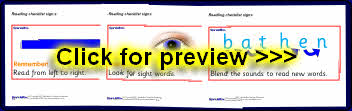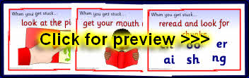 A set of posters with simple reading strategy reminders for young children.