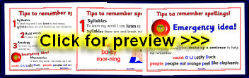 A set of posters featuring the memory strategies suggested on page 180 of the DfES ‘Letters and Sounds’ publication.
