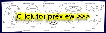 A fun set of printable Nativity character and animal mask outlines to colour and use for role-play. Simply print out, laminate, cut out and attach to lollipop sticks.