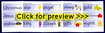 A great set of A4-sized visual aids which are ideal for telling or re-telling the Christmas nativity story. Includes useful story words along with the pictures. These could also be used for sequencing activities or as stimulus for children’s own written retelling of the story.