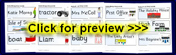 A set of printable word and picture cards linked to the Katie Morag stories by Mairi Hedderwick.