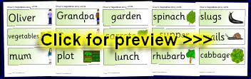 A set of printable word and picture cards linked the story of ‘Oliver’s Vegetables’ by Vivian French. Ideal for classroom word banks for children to use when writing.
