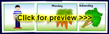 A set of printable visual aids to use with the story of ‘Oliver’s Vegetables’ by Vivian French. Posters feature the vegetables featured in the story along with the days of the week and characters.