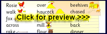 A set of printable word and picture cards linked the story of ‘Rosie’s Walk’ by Pat Hutchins. Ideal for classroom word banks for children to use when writing.