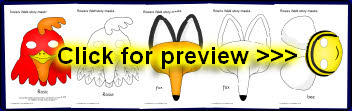 A set of printable cut-out masks for role-playing the story of the Rosie’s Walk. Simply cut out the eye-holes, laminate and attach to a stick for children’s role-play or to retell the story.