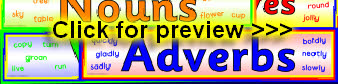 Nouns, Adjectives, Verbs and Adverbs display banners