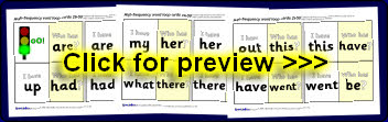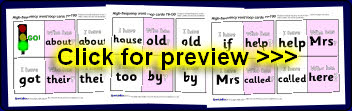 A set of printable loop cards featuring the high-frequency words 76-100 as specified in the DfES ‘Letters and Sounds’ publication.