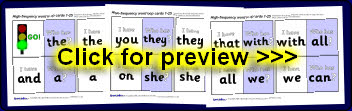A set of printable loop cards featuring the first 25 high-frequency words as specified in the DfES ‘Letters and Sounds’ publication.