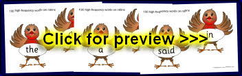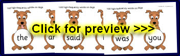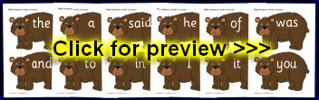 The 100 high-frequency words as specified in the DfES ‘Letters and Sounds’ publication presented on teddy bear characters.