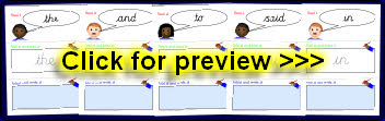 The next 200 medium-frequency words in cursive script (as specified in the DfES ‘Letters and Sounds’ publication) presented on cards with brightly-coloured borders.