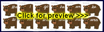 Tricky words on brown bears - cursive (Ref: SB8732)