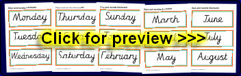 The days of the week in cursive script presented on acorns. Ideal for use with your classroom calendar.