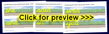 100 high-frequency words presented on ground, grass and sky writing lines.