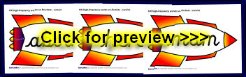 The 100 high-frequency words as specified in the DfES ‘Letters and Sounds’ publication, in cursive script, presented on rockets. Great for classroom keyword displays or if laminated and used for outdoor keyword hunts.